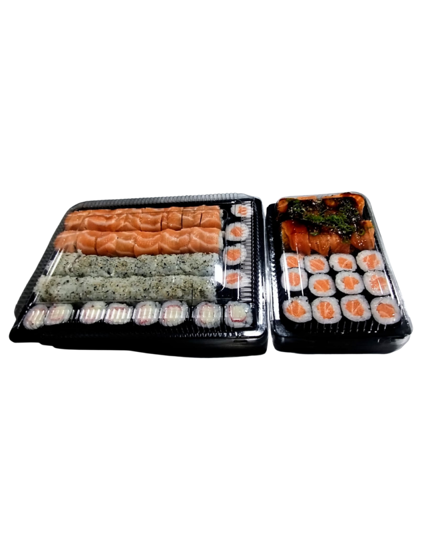 04 Uramaki Salmão Filadelfia, 04 Uramaki Kani , 04 Uramaki Skin Filadelfia, 08 hot panko ,04 hossomaki salmão, 04 hossomaki kani, 02 niguiri skin, 02 niguiri salmão ,02 niguiri kani, 02 joe salmão , 04 sashimi salmão.