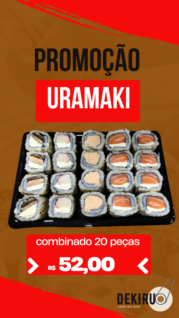 08 Uramaki salmão Filadelfia, 04 Uramaki Pasta de Salmão, 04 Uramaki Kani , 04 uramaki skin.